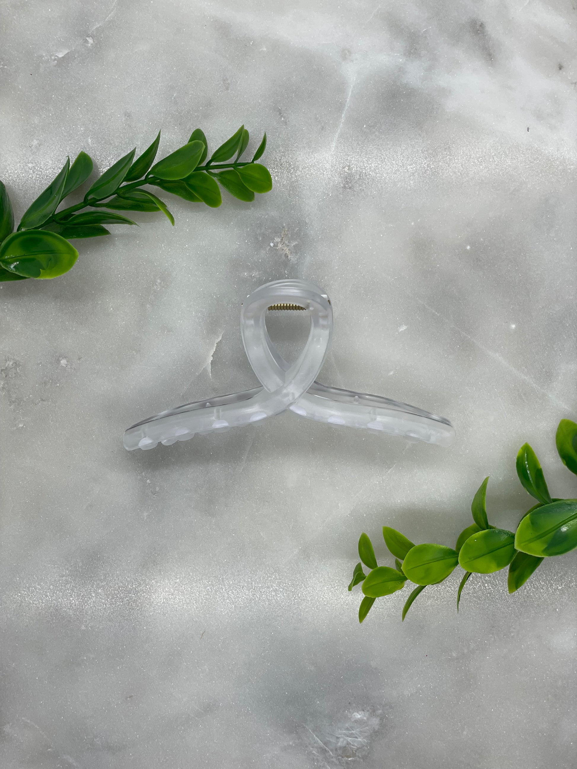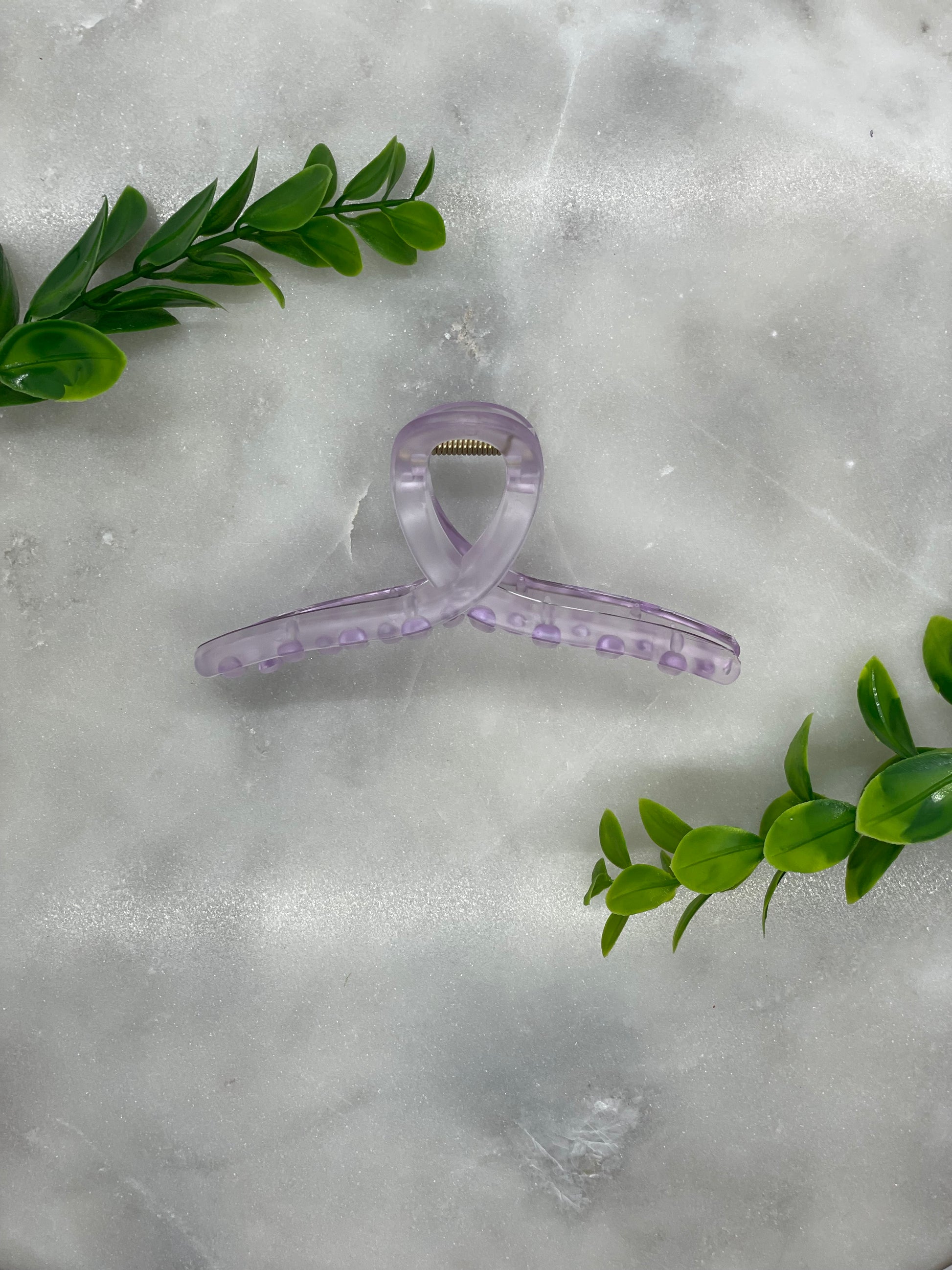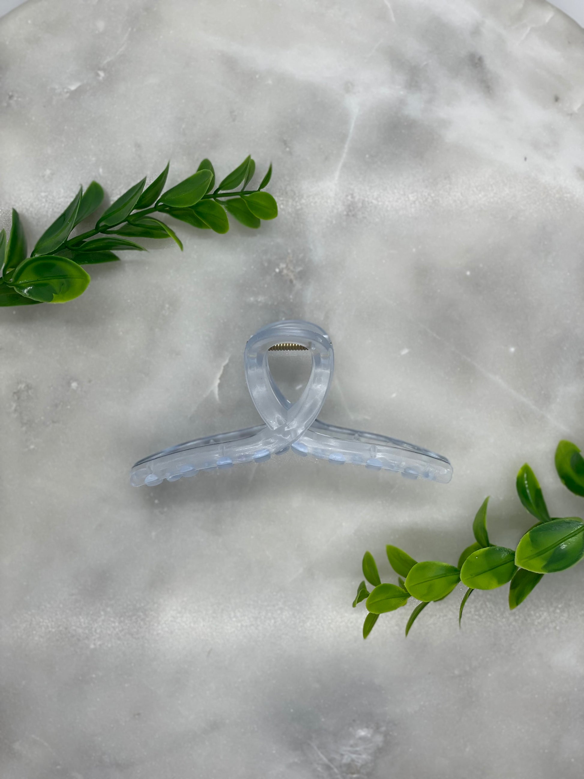 These Hartford Clear Hair Claws measure 4.5” wide x about 2” tall. They are available in 7 clear colors! If you are looking for more colors in this style hair claw, we have multiple listings in our store with more options!