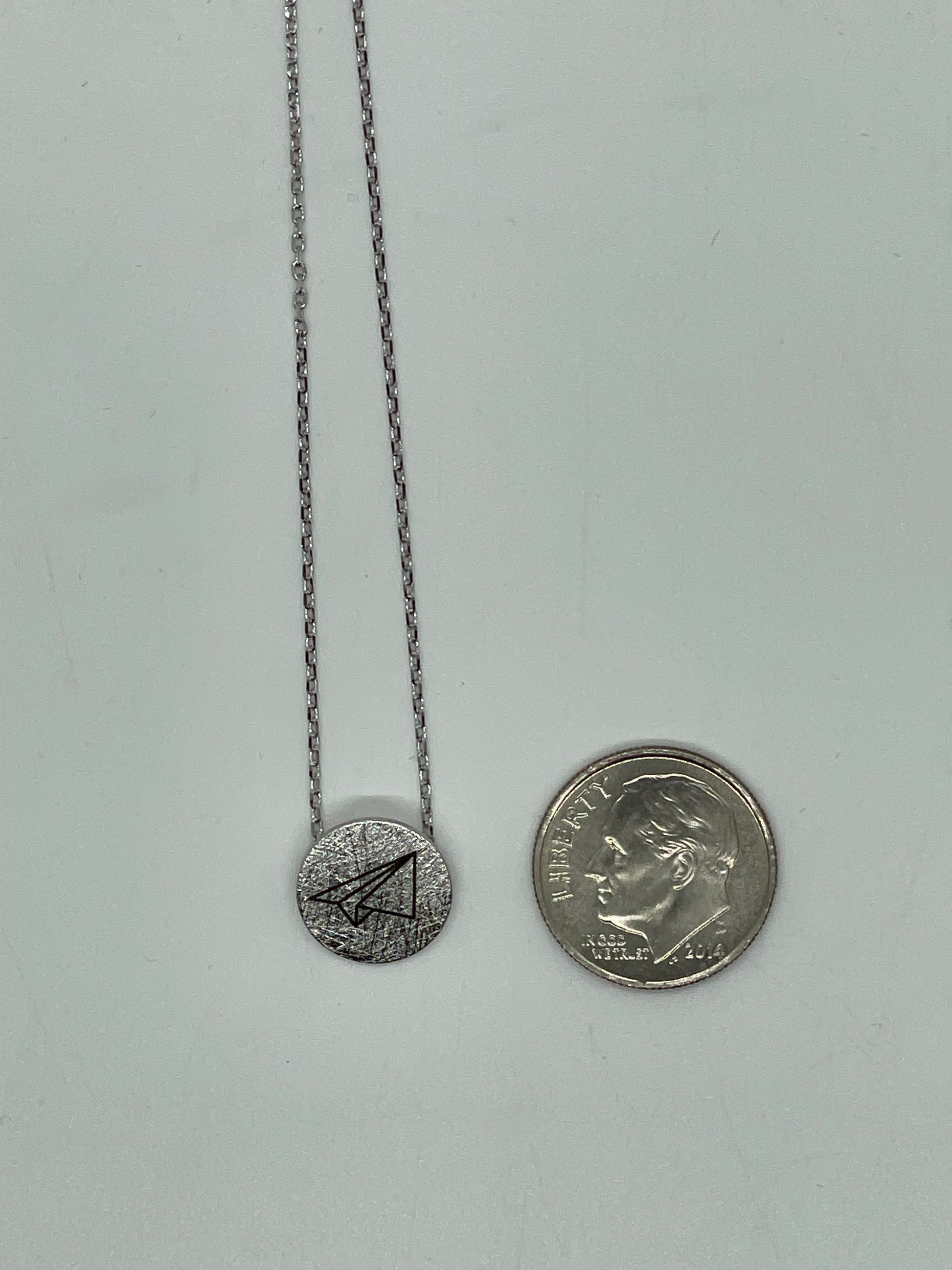 These Paper Airplane Necklaces are 16" in length and available in 2 color options. They are available in 18K Dipped Gold and Rhodium Plated Silver. The pendant on this necklace measures just under .5" so it's perfect to layer with other necklaces or to be worn on its own. This necklace is the perfect gift for the travel lovers in your life, or for yourself!